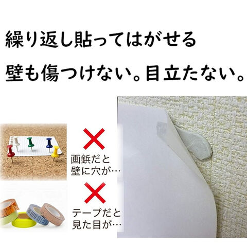 画鋲止めのように壁を傷つけません。掲示物を傷付けずしっかり固定できます。