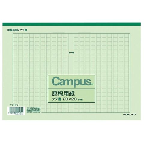【1000円以上お買い上げで送料無料♪】コクヨ 原稿用紙 B5 縦書き 20X20 罫色緑 50枚 - メール便発送