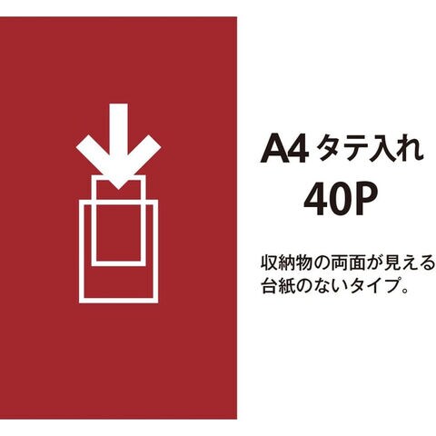 プラス クリアーファイル 溶着式 タテ入れ A4-S 40ポケット FC-124EL レッド