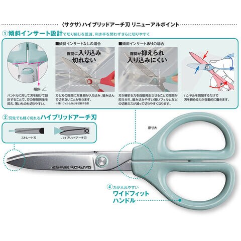 刃先でも軽いキレ味を実現する「ハイブリッドアーチ刃」ハサミ「SAXA (サクサ)」シリーズ。