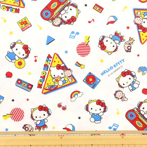 【1000円以上お買い上げで送料無料♪】【オックス】生地 サンリオ キャラクター ハローキティ ミュージック ホワイト 幅約109cm×約45cm - メール便発送