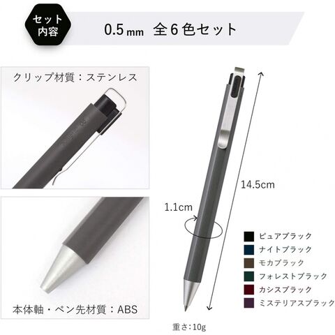 【特長1】黒インキの豊富なカラーバリエーション。6色の黒の絶妙なカラーバリエーションの中から自分にぴったりの黒を選べる。