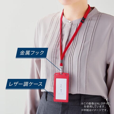 オープン工業 吊り下げ名札 名刺サイズ 縦型 レザー調 青 NL-20P-BU 名札 カードホルダー ネームホルダー