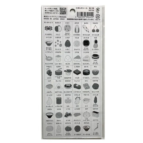 【1000円以上お買い上げで送料無料♪】にほんのシール 食べ物 48ピース入 クリア 透明 都道府県 弱粘着 イラスト 社会 地図 日本製 東京カートグラフィック - メール便発送