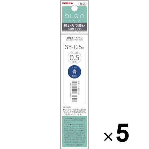 【1000円以上お買い上げで送料無料♪】【5本セット】 油性ボールペン 替芯 bLen ブレン 0.5mm 青インク SY-0.5 U ユー 濃く書ける ゼブラ - メール便発送