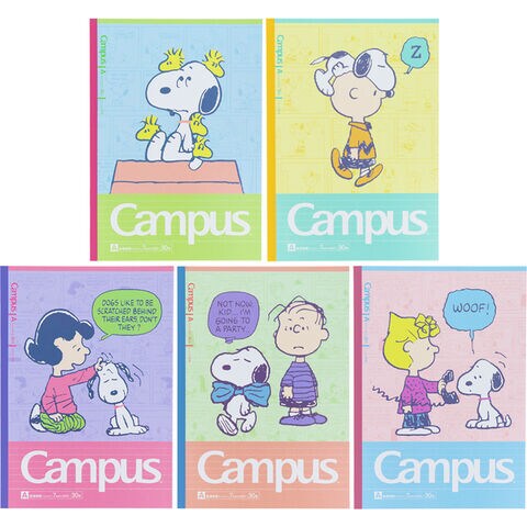 【1000円以上お買い上げで送料無料♪】【5冊パック】スヌーピー Campus キャンパスノート セミB5 ドット A罫 7mm罫 チャーリー/ルーシー 中学 高校 かわいい - メール便発送