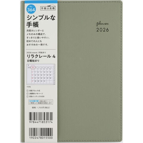 高橋書店 2026年 手帳・ダイアリー (364) リラクレール4 B6 セージ 見開き1か月