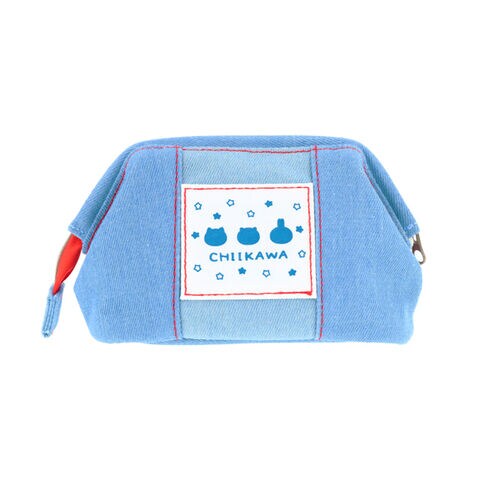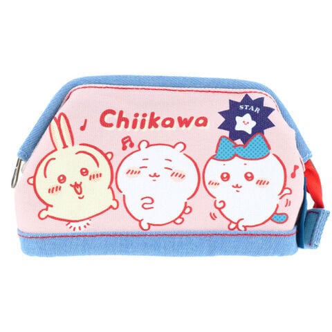 ちいかわ デニムポーチ ワイヤー入 楽しいね ハチワレ うさぎ 大容量 ペンケース 化粧 メイク かわいい サンスター文具