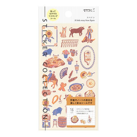 【1000円以上お買い上げで送料無料♪】手帳用シール スペイン柄 闘牛士 フラメンコ パエリア サングリア ひまわり 海外 和紙製 貼ってはがせる かわいい ミドリ - メール便発送