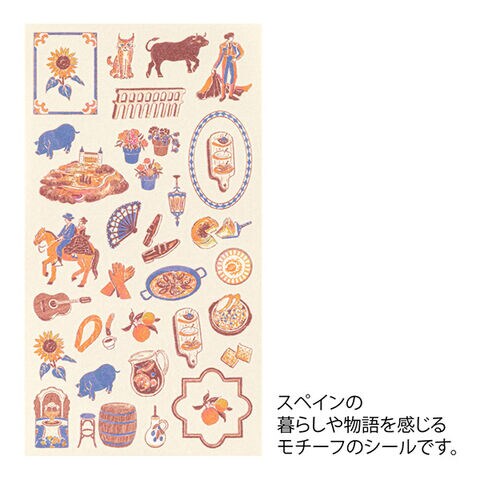 手帳用シール スペイン柄 闘牛士 フラメンコ パエリア サングリア ひまわり 海外 和紙製 貼ってはがせる かわいい ミドリ
