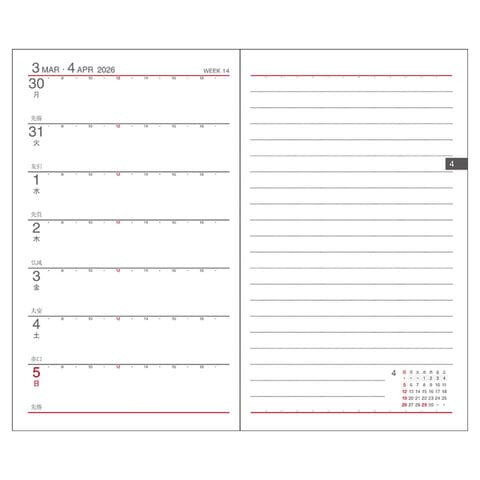 ダイゴー 2026年 手帳・ダイアリー アポイント 1週間+横罫 レッド