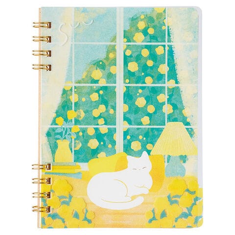 【1000円以上お買い上げで送料無料♪】ノート SUU スー 窓辺の猫 A6 5mm方眼 Wリング クリアカバー付 ねこ ネコ ニャンコ 花 かわいい 日本製 マルアイ - メール便発送
