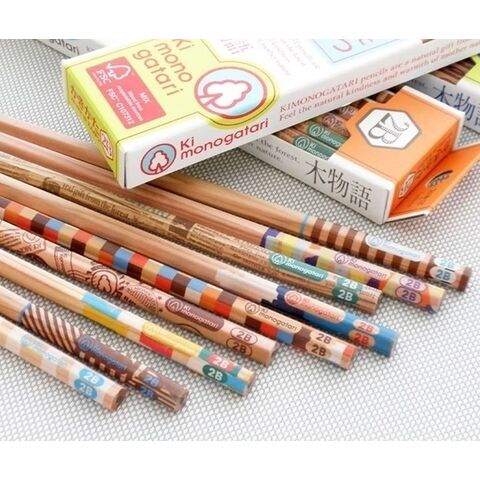 森林認証材を使用したキッズ向けの鉛筆「Ki monogatari」シリーズ。木肌の軸に明るく楽しいデザインをトッピングした、木の温もりが手でも目でも感じられるナチュナルデザインの鉛筆です。