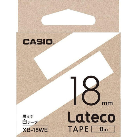 カシオ ラベルライター ラテコ 詰め替え用テープ 白に黒文字 18mm×8m XB-18WE