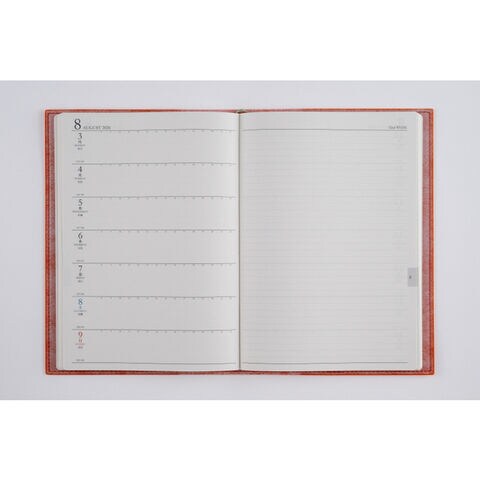スタンダードな記入形式、上品なフォント、見やすく紙面になじむ刷色など、ストレスなくお使いいただけるのが人気の理由です。月間ページがまとまった月間集約型のページ構成は、月をまたぐ予定管理に便利。