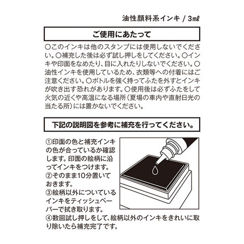 付属のインキパッドのインキが薄くなった時、こちらのインキで補充できます。