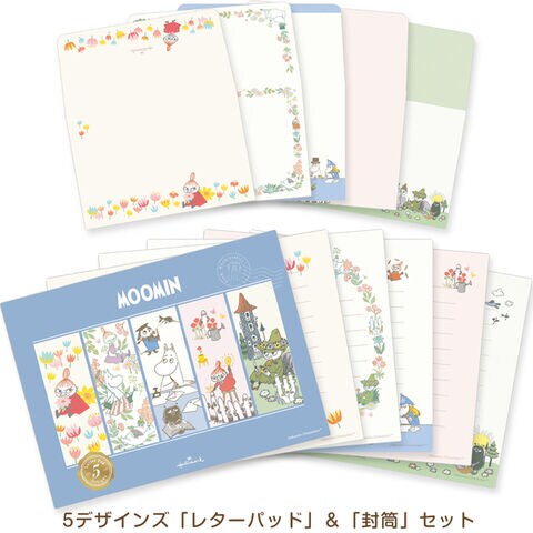 【2点セット】 ムーミン 5デザインズ レターパッド 封筒 L判写真 便箋 手紙 リトルミイ 花 かわいい ホールマーク