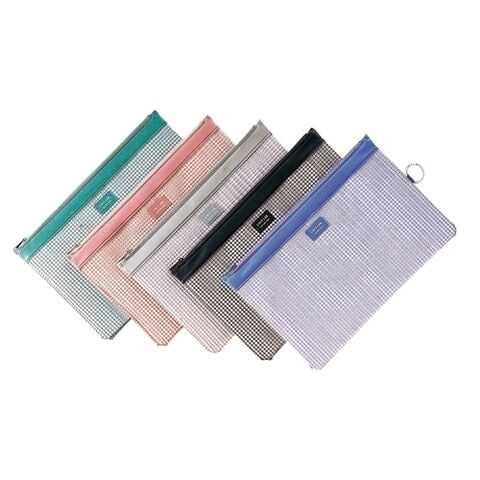 メッシュの入った透明素材で、中身が一目瞭然。メッシュカラーはおしゃれな「PLAN-DO-SEE」のアーバンカラーで、オフィスでもホームユースでも対応します。吊下げに便利なリングフックがついているので、壁に吊下げたり、キーホルダーをつけたり、様々に使用できます。マチのない薄型クリヤーケースです。●規格:B5●外形寸法:縦210×横315mm●メッシュ&ファスナー色:ローズピンク●マチなし●ジッパータイプ●リングフック付●本体材質:ビニール
