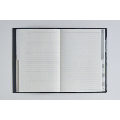 シックなカラーでステッチ入りのカバーは、毎年細部にまでこだわって製作しています。記入スペースと持ち運びやすさのバランスがいいB6サイズ。もっと書きたい方にはA5判の「ディアクレール ラプロ」シリーズもご用意しています。