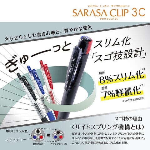 【1000円以上お買い上げで送料無料♪】数量限定 SARASA CLIP サラサクリップ 3C トライアルセット 0.5mm クリア 3色ボールペン 替芯1本付 スリム ゼブラ - メール便発送のレビュー