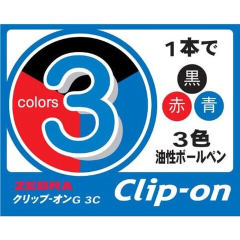 ゼブラ 油性ボールペン クリップ-オンG 3C 黒 B3A3-BK インク色:黒・赤・青