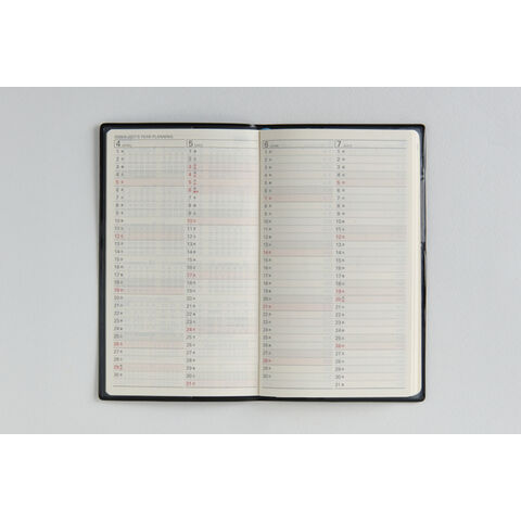 【月間予定表】カレンダーと同じ感覚で見ることができ、週ごとの予定が把握しやすいブロック式。月曜から金曜までの記入スペースが大きいので、平日に予定が多い方にぴったり。ビジネスシーンや学生にオススメの月曜始まりです。 巻末は横罫メモページ付きなので、月間ページに書き足りなくても安心! 【その他】巻末は横罫メモページ付きなので、月間ページに書き足りなくても安心!