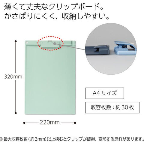 クリップボード 薄型 静音 A4短編とじ グリーン 書類 薄型設計 収納 ペーパーガイド機能