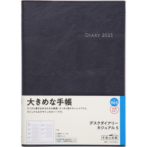 高橋書店 2025年 手帳・ダイアリー 4月始まり 965 デスクダイアリー カジュアル5 月曜始まり ウィークリー ダークネイビー A5