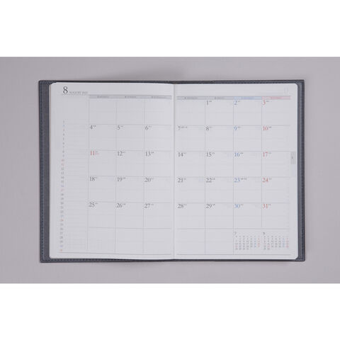 月間ページと週間ページがそれぞれまとまって収録されているので、月をまたぐ予定管理に便利!ビジネスシーンでも使いやすい、スタンダードな記入形式を揃えています。また紙面のレイアウトは上品なフォントと紙面になじむ刷色を採用しているので、ストレスなくお使いいただけるのも人気の理由です。
