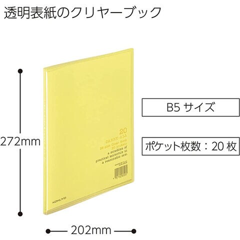 クリヤーブック キャリーオール 固定式 B5縦 20枚ポケット 黄 クリアファイル 仕事 学習 スリム 持ち運び