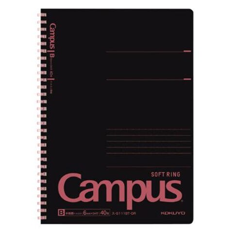 【1000円以上お買い上げで送料無料♪】コクヨ Campus キャンパス ソフトリング ノート セミB5 ドット入 B罫 6mm 40枚 ブラックカラー 赤 ミシン目入 中学 高校 大学 - メール便発送