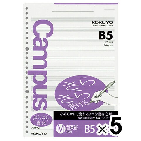 まとめ買い コクヨ キャンパス ルーズリーフ さらさら書ける 音楽罫 B5 50枚 ノ-837M