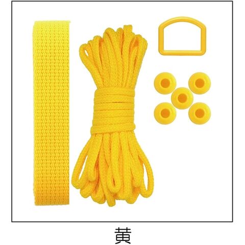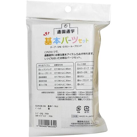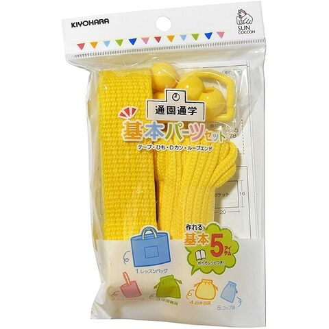 【1000円以上お買い上げで送料無料♪】手芸 手作り 入園入学用品 基本パーツ 5点セット イエロー (カラーテープ/カラーひも/Dカン/ループエンド) 作り方レシピ付 - メール便発送