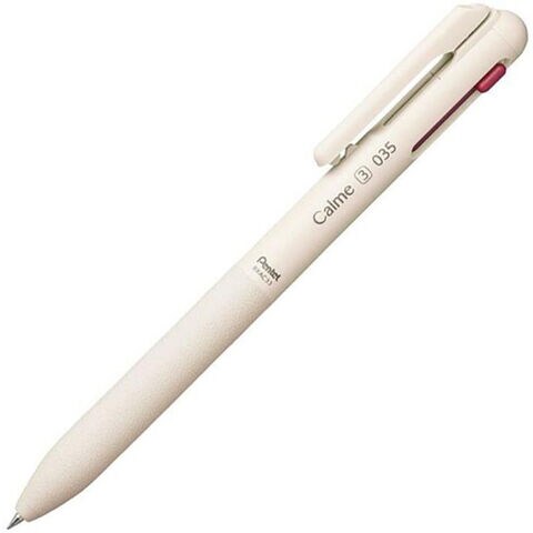 【1000円以上お買い上げで送料無料♪】Calme カルム 3色ボールペン 035mm ベージュ 油性 静音 ノック音 革調グリップ 高発色 なめらか ぺんてる - メール便発送