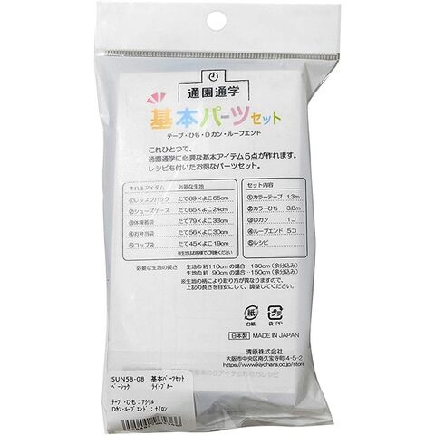 【セット内容】カラーテープ×1本/カラーひも×1本/Dカン×1個/ループエンド×5個/通園・通学の基本5アイテムの作り方レシピ