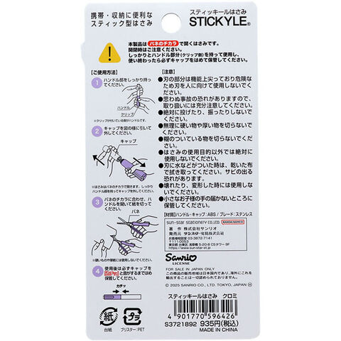 【送料無料】クロミ スティッキールはさみ スティック型 クリップ付キャップ 携帯 コンパクト 文房具 かわいい サンスター文具 - メール便発送
