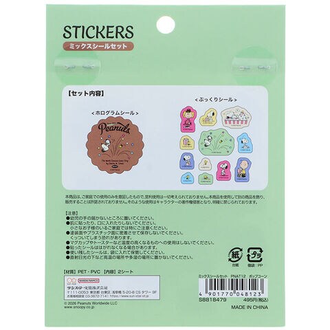 スヌーピー ミックスシール 2種セット ポップコーン ホログラム/ぷっくり PEANUTS アメリカン かわいい サンスター文具