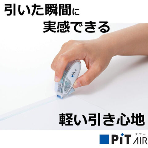 軽い引き心地のピットエアーから、持ち運びに便利なコンパクトサイズが登場!詰め替えてくり返し使えるので経済的。網目形状のテープで、良好なのり切れと強い粘着力の両立を実現。厚みのある封筒の端も剥がれづらく、封かん作業やしっかり貼りたいプリントにも安心です。気になるテープのりの走行音を低減。授業中、図書館、オフィス等、静かな場所でも音を気にせず、のり付け作業ができます。