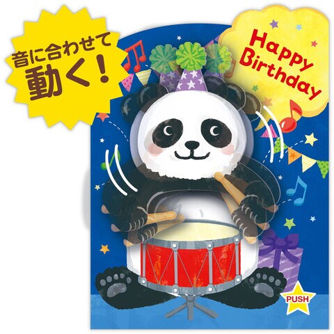 パンダがリズミカルに太鼓を叩いて誕生日をお祝いしてくれます。