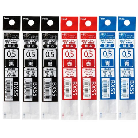 【1000円以上お買い上げで送料無料♪】まとめ買い 3色 7本セット ぺんてる ビクーニャ ボールペン 替芯 0.5mm 黒3本 赤2本 青2本 セット - メール便発送