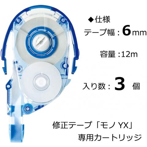【1000円以上お買い上げで送料無料♪】トンボ鉛筆 MONO YX 修正テープ つめ替えカートリッジ 幅6mm CT-YR6 3個セット - メール便発送