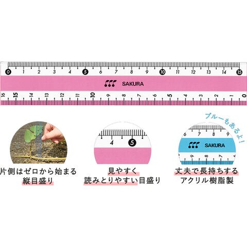 【1000円以上お買い上げで送料無料♪】直線定規 15cm ブルー アクリル樹脂製 ゼロスタート目盛り 長さ 深さ 見やすい 授業 入学 小学 サクラクレパス - メール便発送