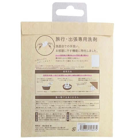 軽量コンパクト、携帯に便利なシート型洗剤「旅人の洗剤」です。