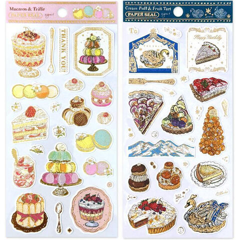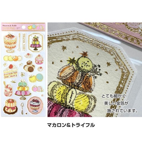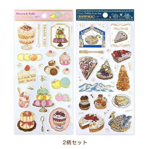 【1000円以上お買い上げで送料無料♪】【2柄セット】 いのうえ彩 ペーパーシール デザート マカロン タルト 金箔押し コットン素材 人気作家 大人かわいい - メール便発送
