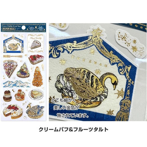 【2柄セット】 いのうえ彩 ペーパーシール デザート マカロン タルト 金箔押し コットン素材 人気作家 大人かわいい