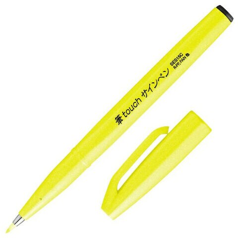 【1000円以上お買い上げで送料無料♪】筆タッチサインペン 蛍光イエロー 細字 水性 ブラックライトで光る 筆文字 カリグラフィー イラスト 水彩画 ぺんてる - メール便発送