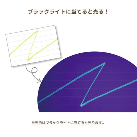 ブラックライトに当てると光る蛍光色。
