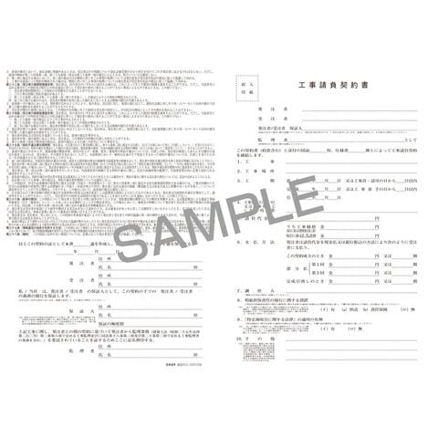 建設工事の請負契約の当事者は、所定の事項(建設業法第19条)を記載した契約書を使用しなければなりません。この契約書はこれを完備した契約書でノーカーボンの2枚複写になっております。