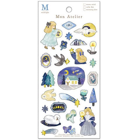 【1000円以上お買い上げで送料無料♪】ドロップシール モナトリエ ステッカー ミッドナイト 金箔 夜 月 星 森 動物 女の子 かわいい マインドウェイブ - メール便発送