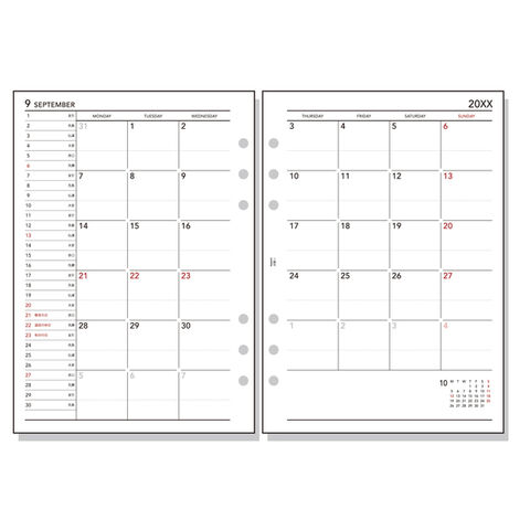 【レイアウト】見開き両面1ヵ月ブロック式 マンスリー 月間 ブロック